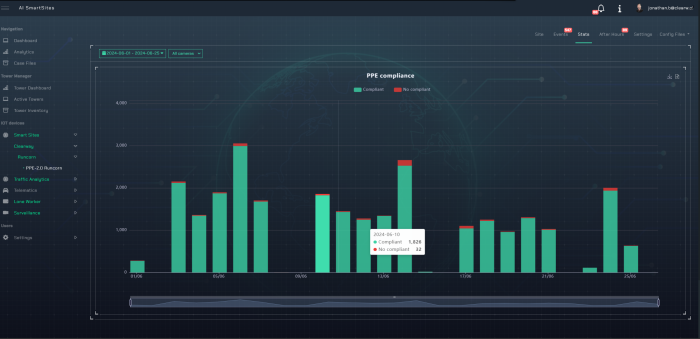 AI-enabled CCTV systems continually analyse and track video footage across sites and compounds.