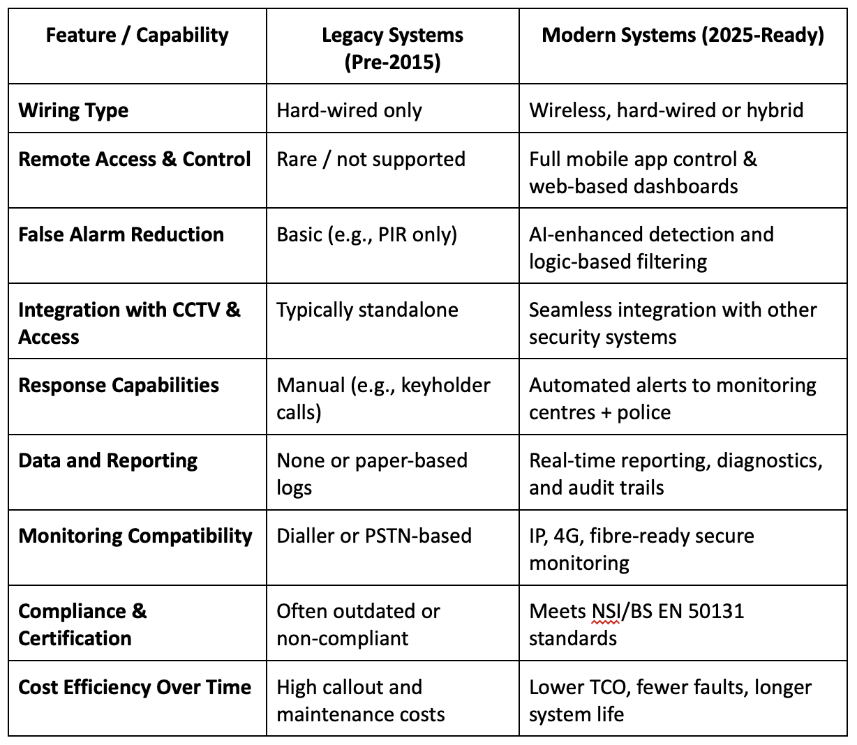 Comparison Table: Legacy vs Modern Business Alarm Systems