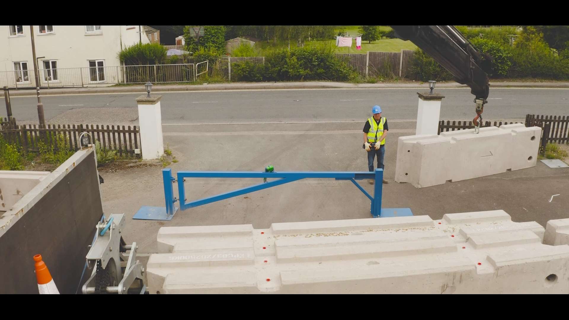 Fitting concrete barriers across carriageways or around working areas to protect contractors from traffic, slow down vehicle speeds to avoid collisions, and control the flow of vehicles around projects.