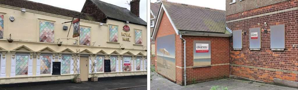 Vacant properties are frequently deserted and can become unsightly. If the property needs to be secured Clearway provides vacant property solutions which better suit the local community by wrapping steel screens in bespoke printed vinyl. Call us on 0800 085 8695 to learn more.